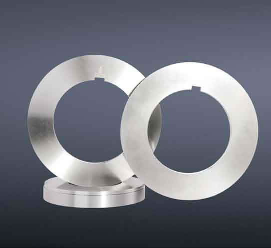 Le disque séparateur de la lame de refente peut être fabriqué à partir de SKD-61 (4Cr5MoSiV1), 40CrMo.Cr12, d'acier allié, d'acier hautement carboné et autres matériaux. Parmi ceux-ci, le SKD-6 est le matériau le plus couramment utilisé en raison de ses bonnes propriétés de résistance aux températures élevées et de son équilibre de rigidité. Après le refendage, le disque est utilisé pour maintenir un certain écart entre les bandes, ce qui permet de prévenir les chocs. En cours de processus de production, le joint d'étanchéité. Au cours du processus de production, le joint d'étanchéité subit un traitement thermique, un traitement de polissage, de plaquage au chrome (0.05m/mt) qui permet d'assurer afin d'assurer une surface lisse et une grande résistance à l'usure. La couche extérieure du plaquage au chrome peut réduire le risque de marques.
